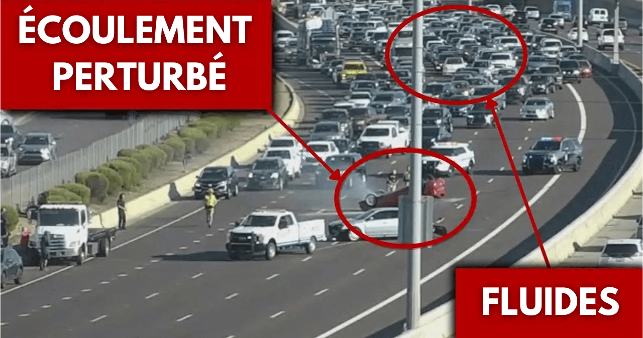 L'accident crée un goulot d'étranglement sur la route, limitant le nombre de voitures pouvant passer. Cela limite également la vitesse maximale à laquelle vous pouvez vous déplacer.