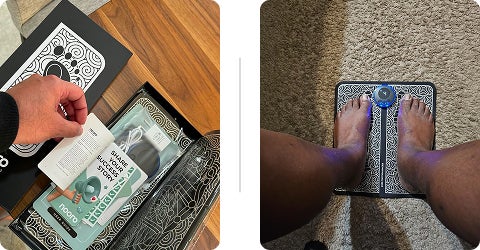 Simply place your feet on the pad, select your intensity level, and let the device do the work while you relax.
